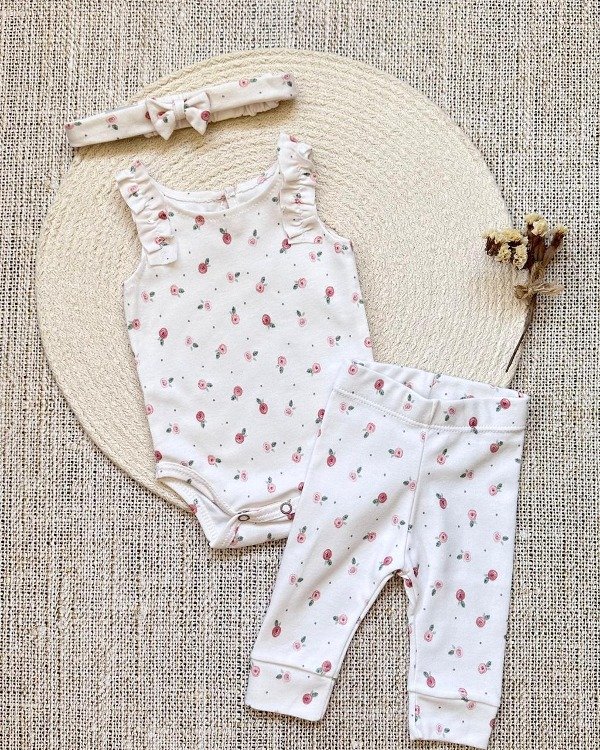 👕🩳CONJUNTO BODY, PANTALONCITO Y VINCHA FLORES 🌹🌷