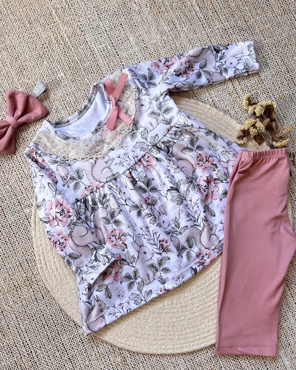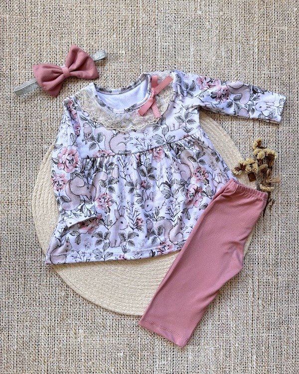 COLOR: rosa viejo y estampa conejitos