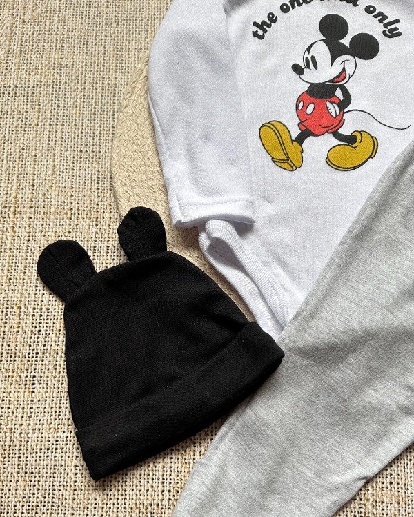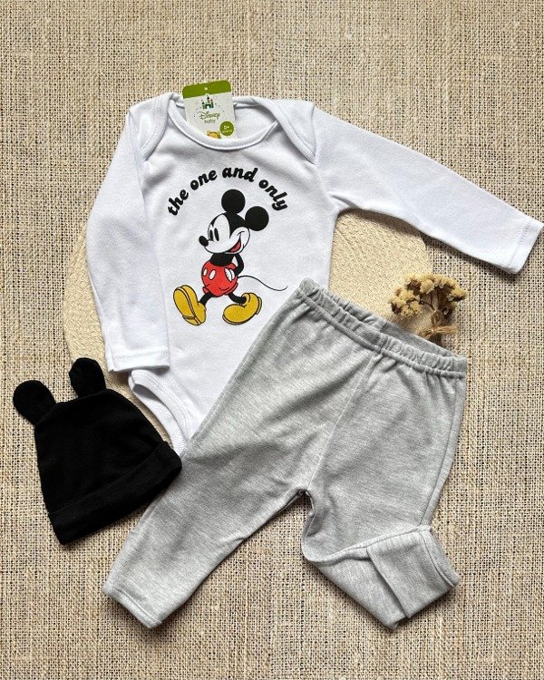 Consiste en body, pantaloncito y gorro. Viene en caja y son productos de la LINEA OFICIAL DE DISNEY. 🤩❤️