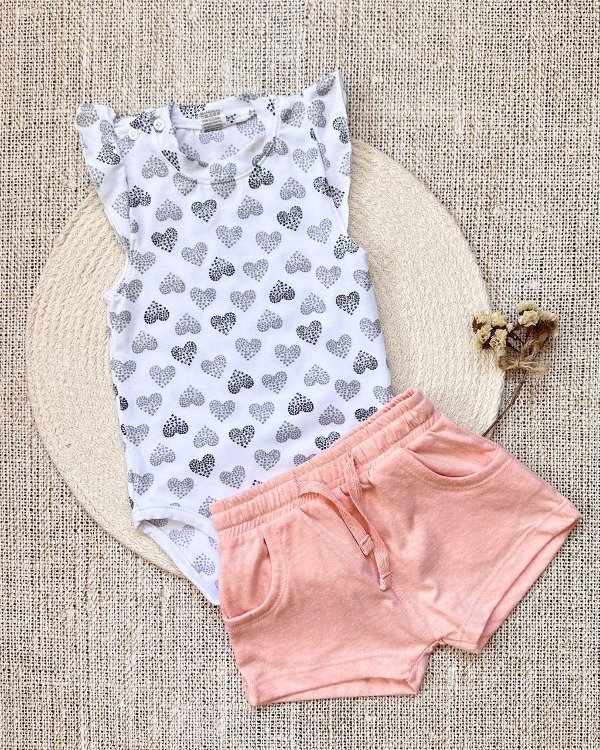 👕👖CONJUNTO BODY Y SHORT GRIS MELANGE CLARO BASICA BEBE 🩶